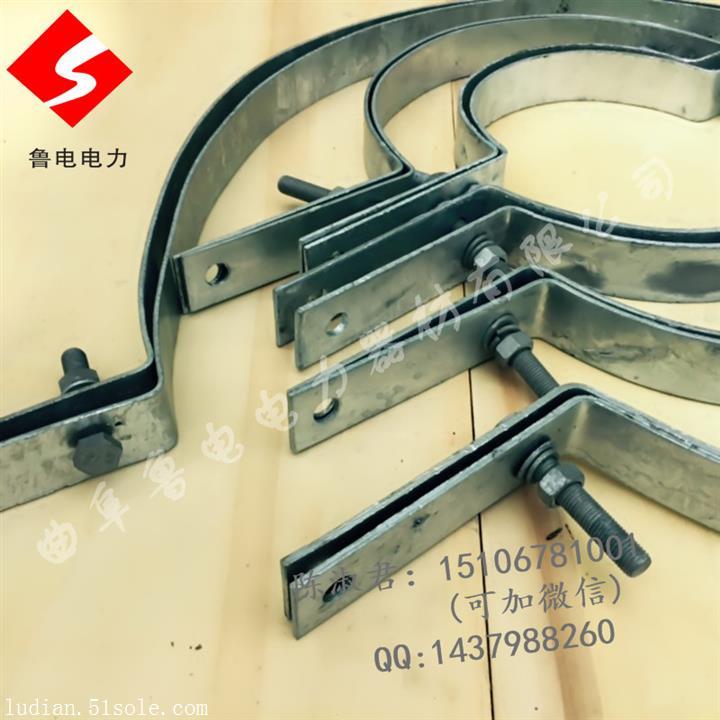 产品详情:抱箍(拉线抱箍装置,吊线抱圈)是用到一种材质抱住或箍紧另一种材质的组件。它属于紧固件。由箍板,翼板,连接板,螺栓和内垫圈构成。箍的类型很多,电线箍,电报杆箍,拉线箍,葫芦线箍,不锈钢箍。一种嵌入式箍,是箍的左右两半。联接后,箍的左半部和右半部为半圆环形,并且半圆的两边向外弯曲以形成安装耳。其特性在于,箍的左半部分的一端兼具安装耳,相应地,箍的右半部分的对应端的安装耳上设有销,销的右半部分的一端兼具销。将卡箍插入卡箍左半部分末端的插入槽中。